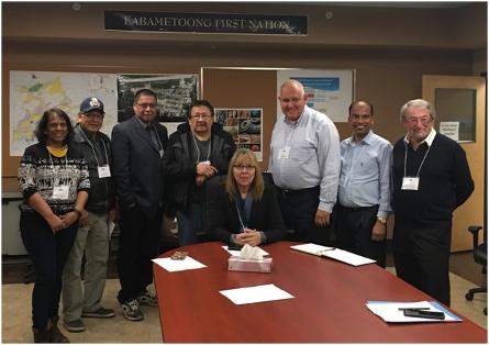 Left to right: Markham Regional Councillor Nirmala Armstrong, Eabametoong Councillors Steven Atlookan, Louie Sugarhead and Charlie Okeese, Chief Elizabeth Atlookan, Markham Mayor Frank Scarpitti, Councillor Logan Kanapathi, Kenneth Caplan.